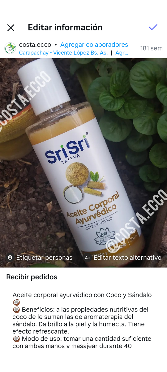 Aceite corporal ayurvédico con Coco y Sándalo 🥥