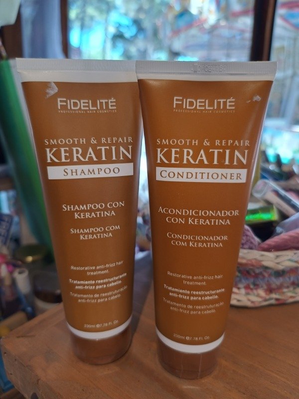 Shampoo con keratina, tratamiento reestructurante antifrizz.