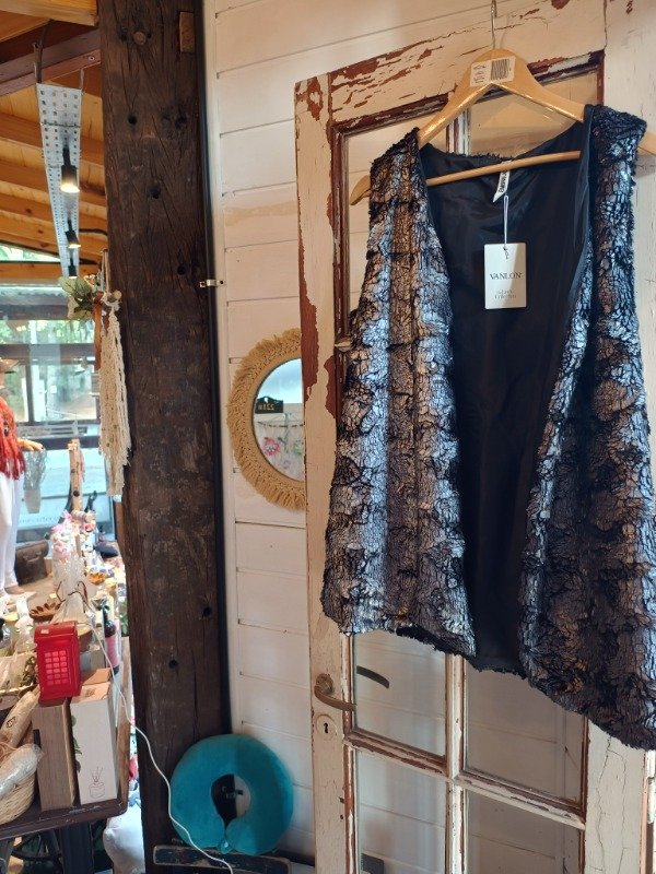Chaleco gris con piel, talle 36